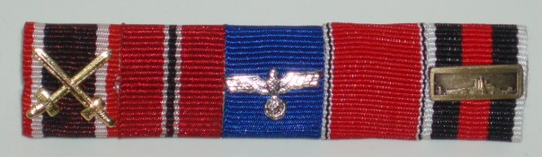 WWII German Army Ribbon Bar. 5 place ribbon bar with 3 devices.
