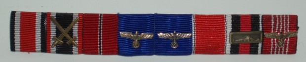 WWII German Army Officer's Ribbon Bar. 8 place ribbon bar with 5 devices.