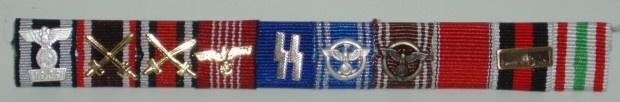 WWII German SS General Karl Wolf Ribbon Bar. 10 place ribbon bar with 8 devices.