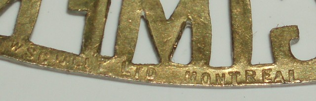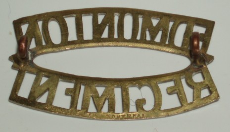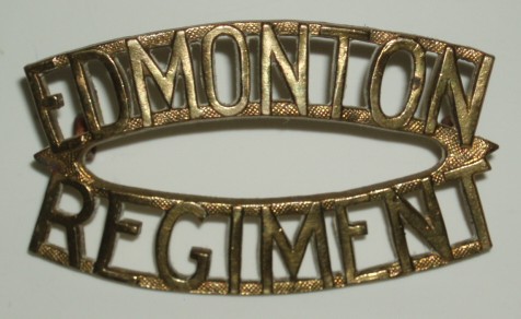 WWII Canadian Edmonton Regiment Metal Shoulder Titles. Stamped brass maker marked W. Scully, Montreal. Pair.