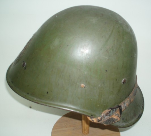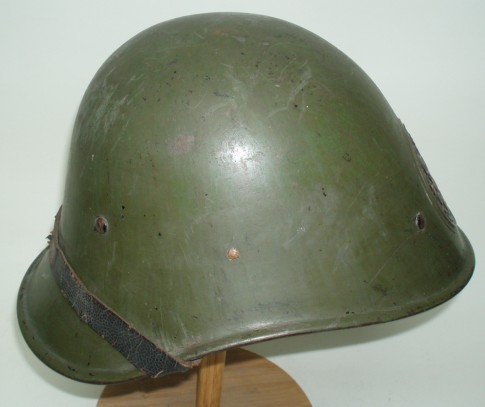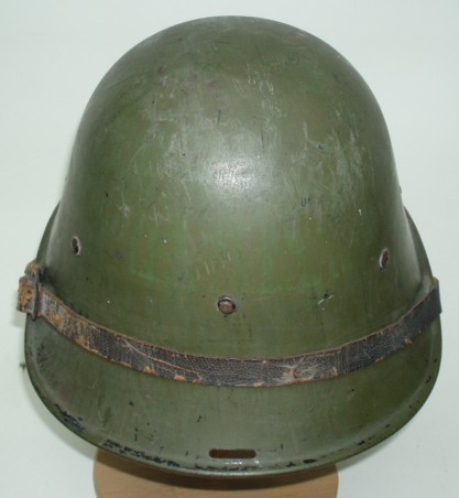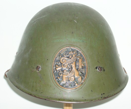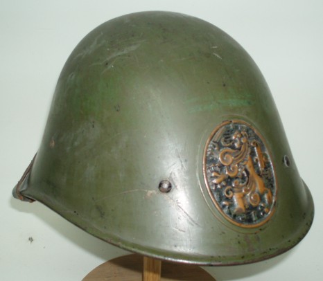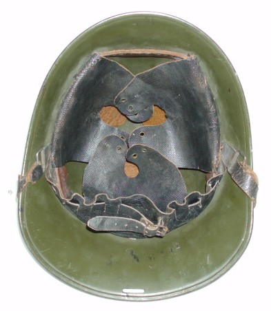 Royal Netherlands, (Dutch) M1927 Helmet With Badge. Original green paint with metal badge on the front. Complete with liner & chin strap.