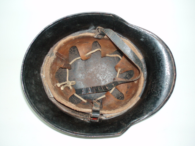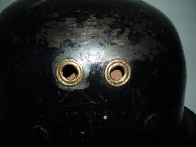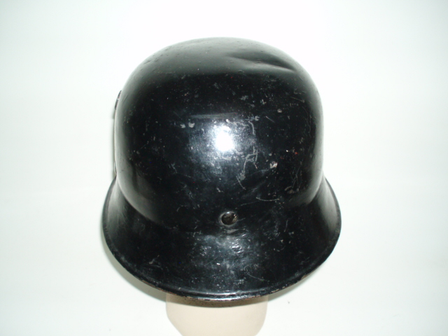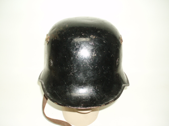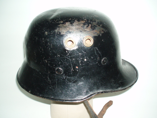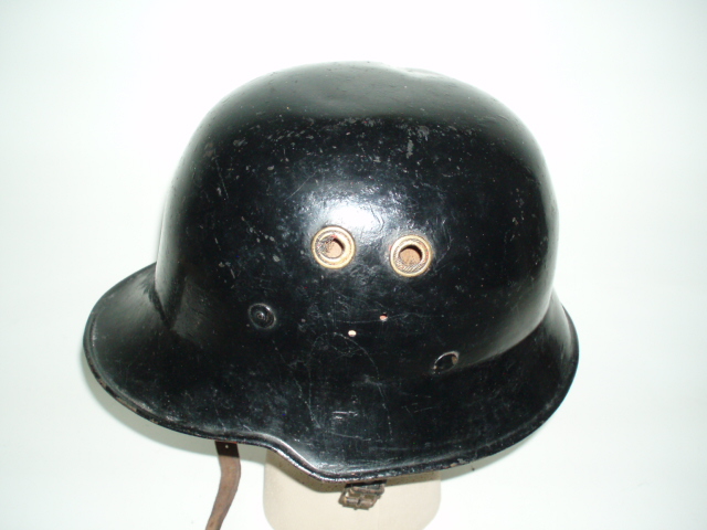 German Fireman's Helmet, Post War. Large double side vents, (screens missing).