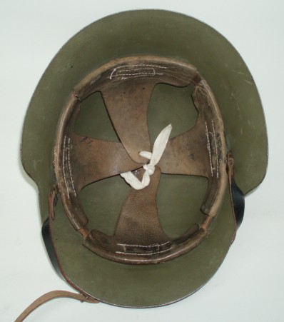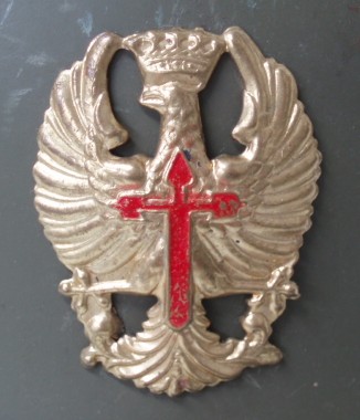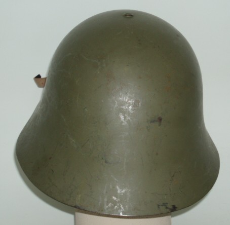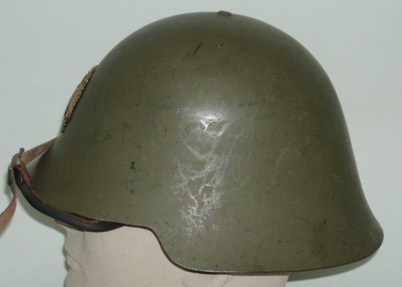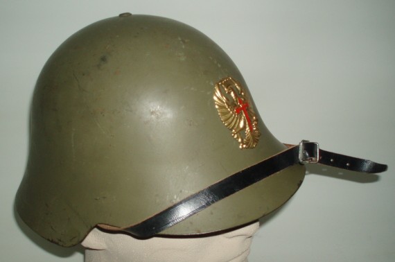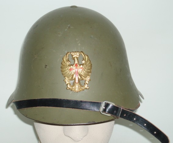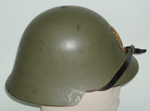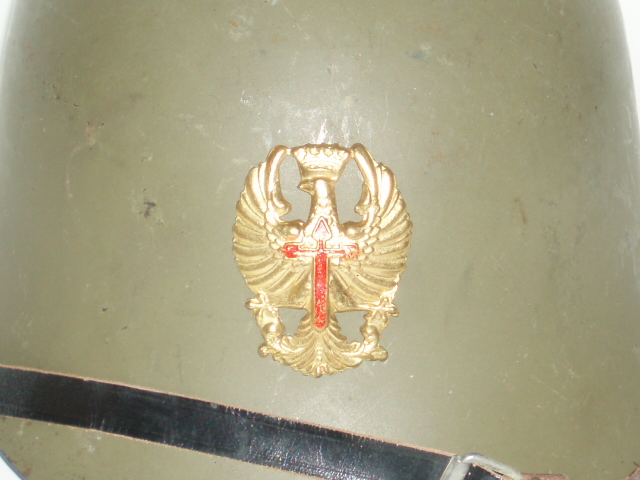 Spanish Model 1938 Helmet With Badge. Original helmet with the adddition of the brass badge mounted on the front per the 1943 regulations.