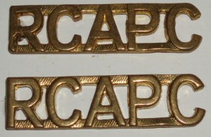 WWII Royal Canadian Army Pay Corps brass Shoulder Titles, pair.