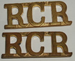WWII Royal Canadian Regiment brass Shoulder Titles, pair.