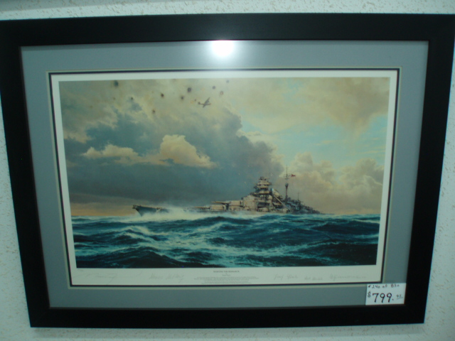 Sighting The Bismarck. Print by Robert Taylor #240/850. 26 May 1941 a Catalina of 209 Sqn reports sighting & radios in the position.