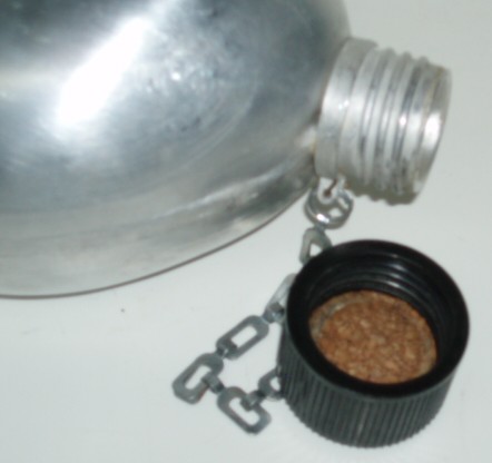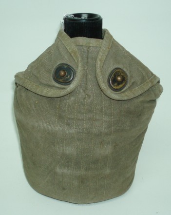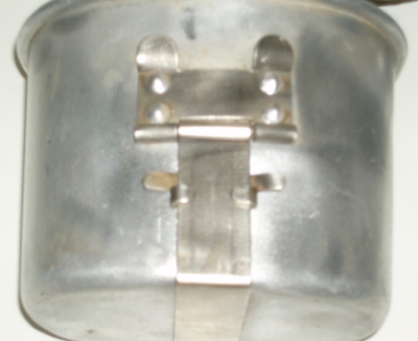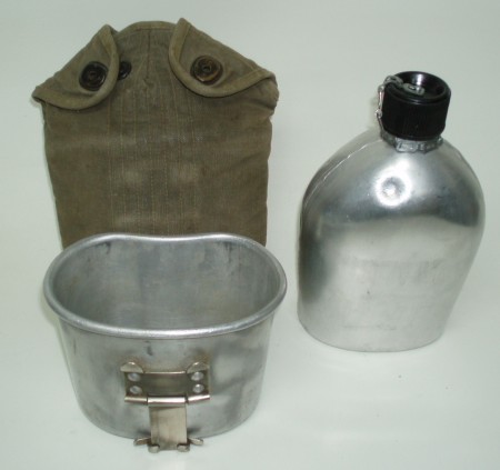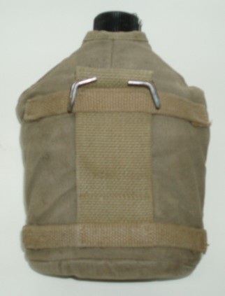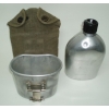 WWII US M1941 Canteen Carrier For Paratrooper & Cavalry. WWII Carrier is marked "3950" on the bottom. Aluminium canteen with cap & chain is marked on the botton, "Japan". Cup is un marked. Canteen & cup are from the 1960's. Perfect for display or reenactment.