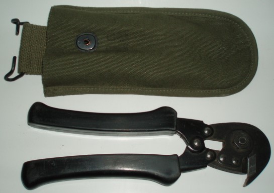 WWII US Wire Cutter & Pouch. O.D. cotton pouch maker marked & dated 1945.