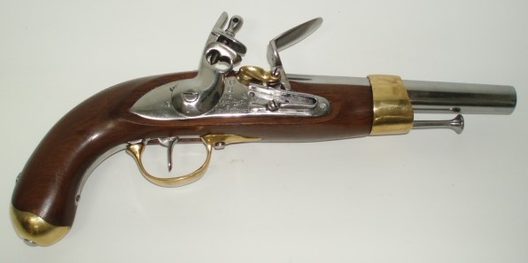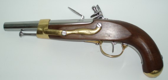 This was the most prolific cavalry pistol during the Napoleonic Wars with approx. 300,000 produced. Many were converted to percussion in later years to extend their service life. Very similar to the French Model 1822 percussion pistol.